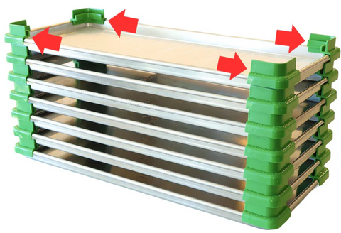 - Add parchment paper to your trays. Pour the smoothie onto your tray, then add the dividers in the 40 portion configuration. Freeze until frozen solid